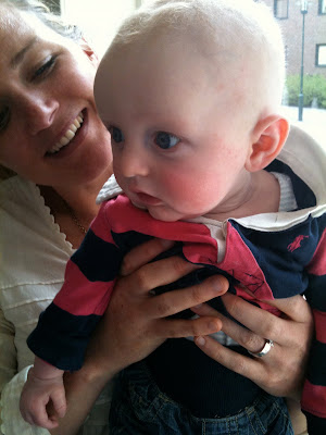 Vi var och käkade lunch med dessa tre. Peder blir fyra månader imorgon, och hans föräldrar är väldigt sugna på att börja med smakportioner nu. Tror nog att det kommer ske till helgen. Hoppas att man är där då och förevigar det hela, så kan ni också få glutta. Snällt va?
